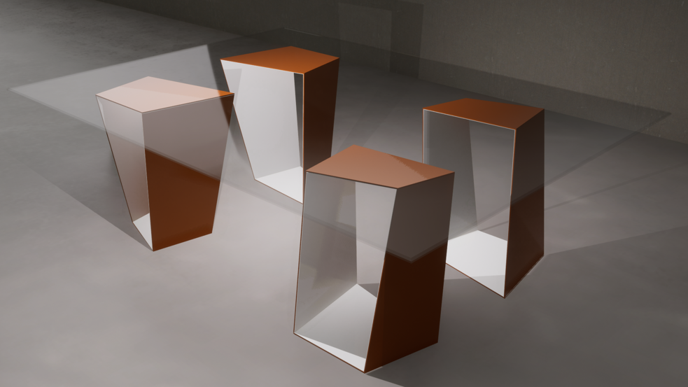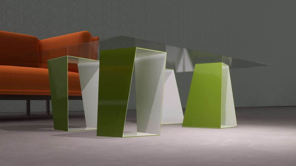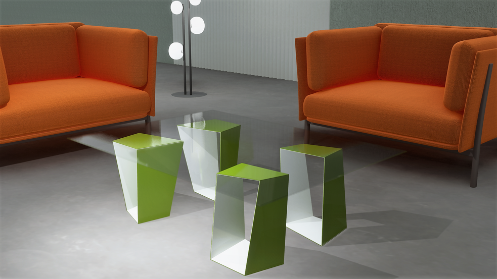 Mapo è un tavolino realizzato in metallo smaltato. La particolarità è nella doppia colorazione, interna ed esterna, che conferisce una maggiore possibilità cromatica all'oggetto. La possibilità di orientare i piedi, permette di combinare la loro disposizione e avere diversi effetti estetici.